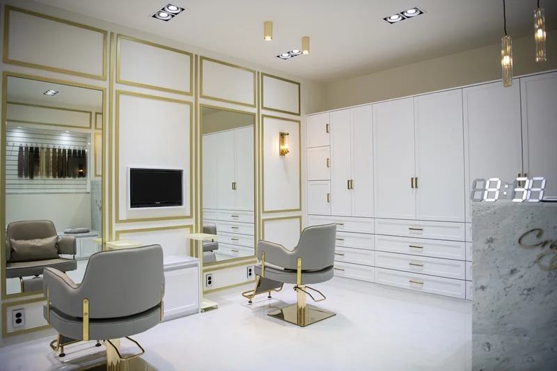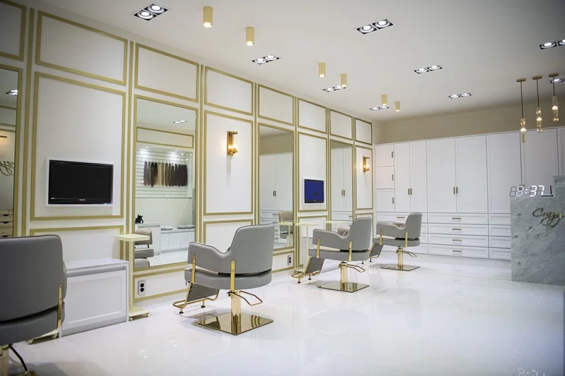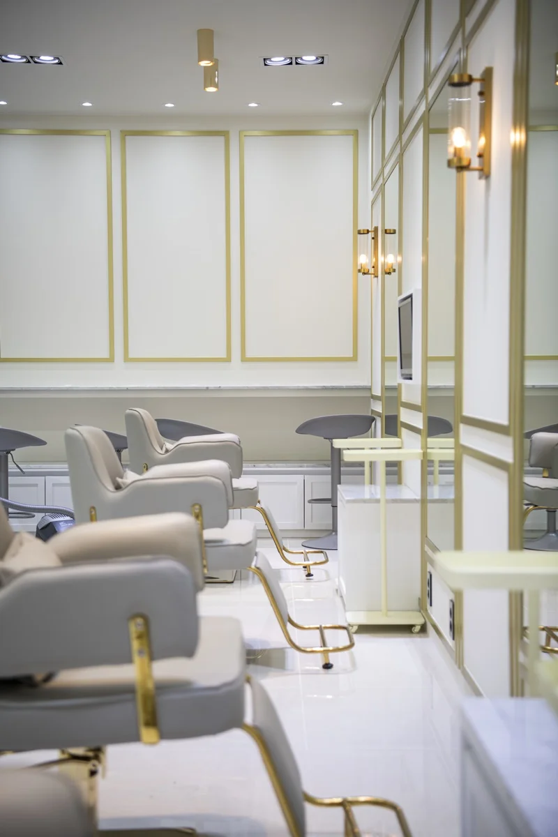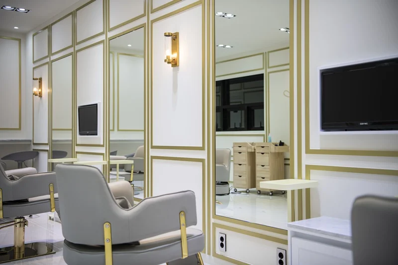 소형 미용실을 고급스럽게 만들기 위해서는 골드 포인트를 적재적소에 배치하는 것이 중요합니다. 골드화이트미용실디자인의 핵심은 ‘과하지 않게’ 포인트를 주는 것입니다. 메인 사인간판과 로고에 골드 컬러를 활용하면 미용실의 첫인상을 고급스럽게 만들 수 있습니다. 입구에서부터 시선을 사로잡는 골드 포인트는 방문객에게 품격 있는 미용실이라는 인상을 줍니다.