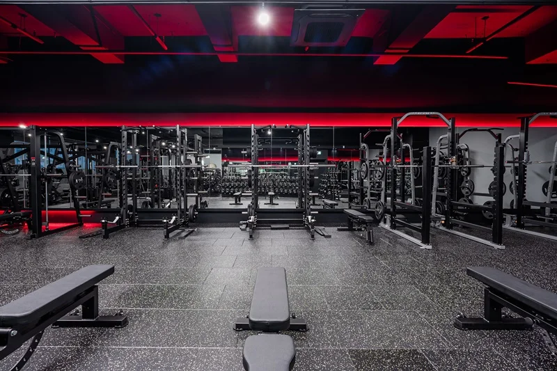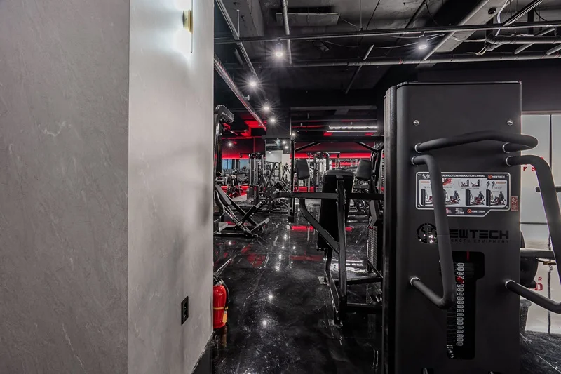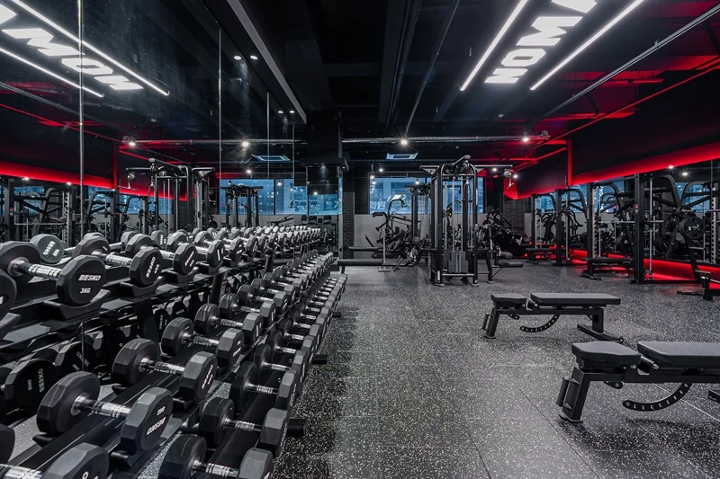 기구 사이의 간격도 충분히 확보해야 합니다. 이는 회원들이 운동 중에 서로 부딪히는 것을 방지하고, 안전하게 운동을 할 수 있도록 도와줍니다. 또 프리웨이트 존에는 파워렉, 벤치프레스, 스쿼트렉 등의 기구를 중심으로 덤벨과 케틀벨 등을 배치 하는 것이 일반적이며, 스트레칭 룸 또는 매트를 깔 수 있는 별도의 공간을 마련한다면 더욱 완성도 높은 헬스장 인테리어가 될 것 입니다.