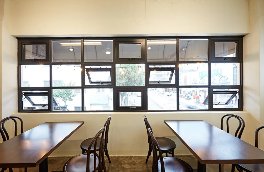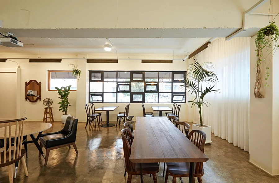 우선, 입구부터 카운터, 테이블까지 이어지는 동선을 자연스럽게 연결되도록 설계했습니다. 또 내부 공간을 여유롭게 구성하여, 고객들이 서로 방해받지 않고 편안하게 시간을 보낼 수 있도록 했습니다.