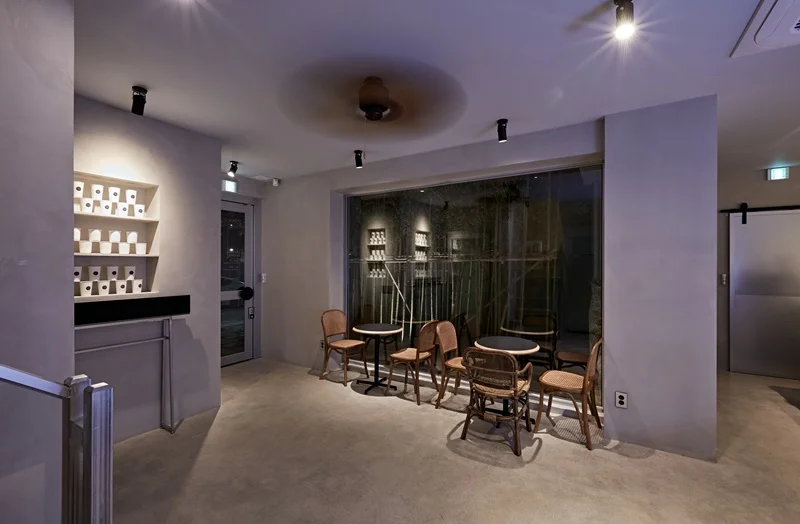 카페 내부는 크게 세 개의 공간으로 구성되었습니다. 입구 쪽에는 주문 카운터와 주방이 위치하며, 안쪽에는 테이블과 의자가 놓인 좌석 공간이 있습니다. 그리고 별도의 작은 방에는 단체 손님을 위한 대형 테이블이 놓여 있습니다. 각각의 공간은 서로 다른 분위기와 용도를 가지고 있는데, 이러한 특성을 고려하여 조명과 가구 등을 배치하였습니다.