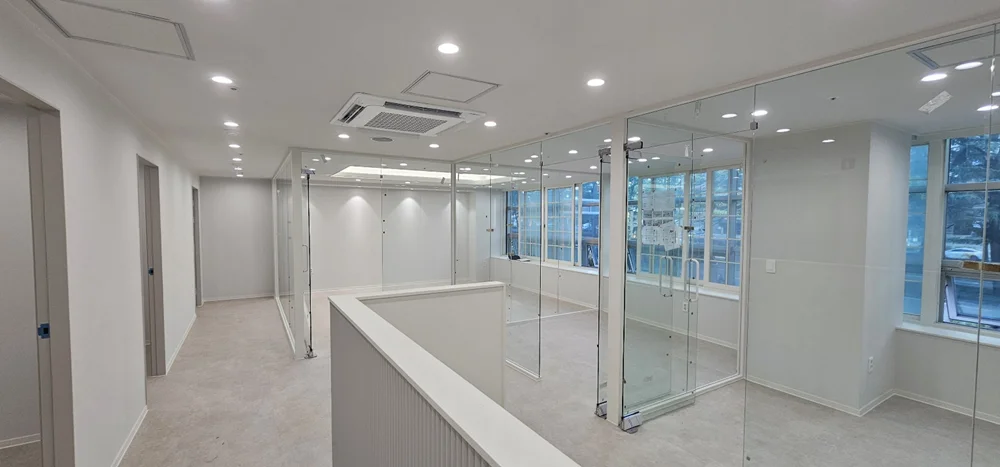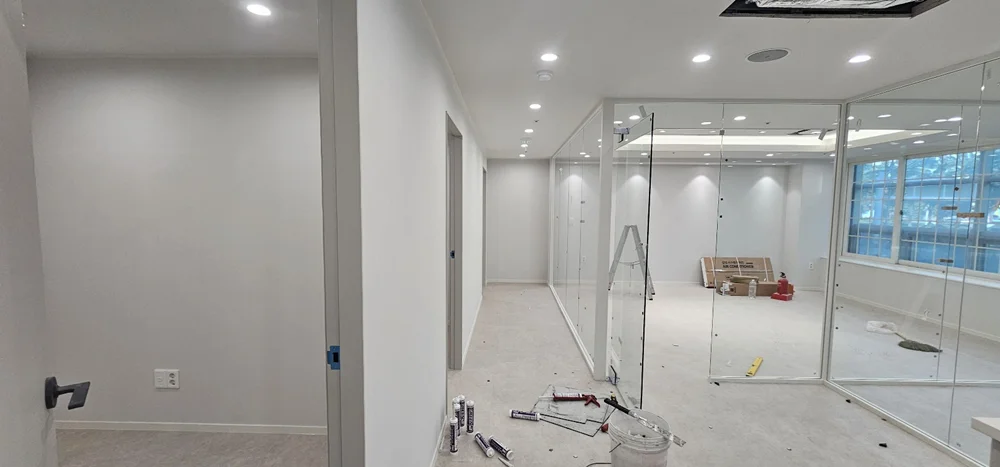 사무실유리칸막이인테리어 칸막이 설치가 완료되면, 최종 점검을 하고 마무리합니다. 실리콘이 굳을 때까지 일정 기간 동안 주의해야 합니다. 유리 칸막이는 정기적인 청소와 유지보수가 필요합니다. 먼지나 오염물질을 제거하고, 손상된 부분이 있으면 수리해야 합니다. 이러한 과정을 거쳐 유리 칸막이를 설치하면, 깔끔하고 세련된 공간을 연출할 수 있으며 업무 효율성을 높일 수 있습니다.