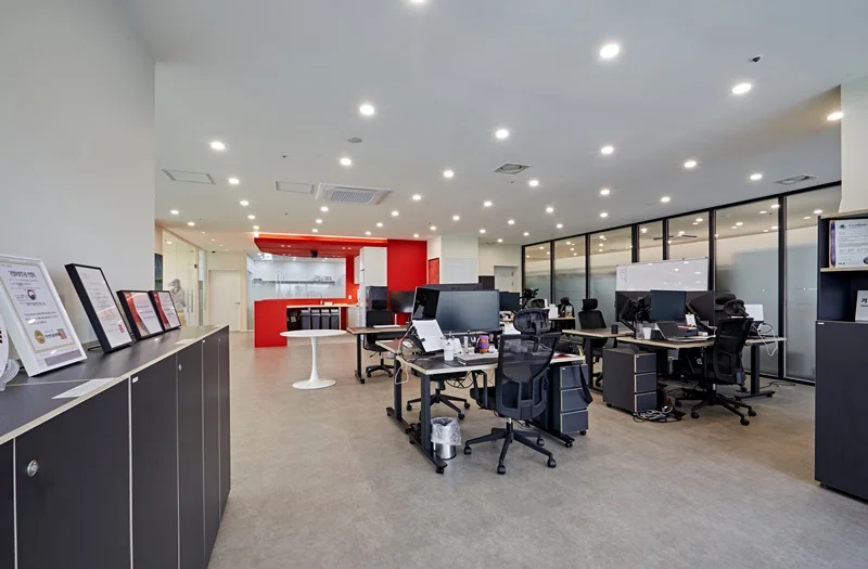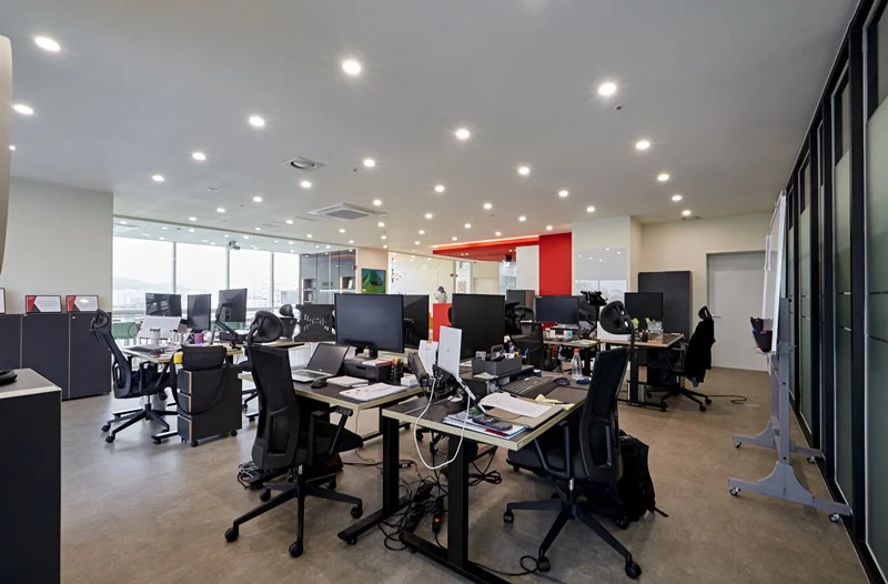 두번째로는 조명과 색채예요. 조명은 업무 집중도와 분위기에 큰 영향을 미치며, 색채는 공간의 분위기와 함께 직원들의 심리적 안정감에도 영향을 줘요. 자연광을 최대한 활용하고, 상황에 따라 적절한 조도를 조절할 수 있는 조명을 설치하는 것이 좋으며, 색채는 밝고 화사한 색상을 사용하여 경쾌하고 활기찬 분위기를 연출하는 것이 좋아요.