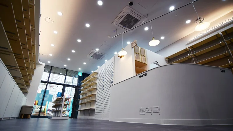 성동구상가인테리어 약국의 디자인 레이아웃입니다. 약국의 인테리어에서 가장 중요한 부분 중 하나는 공간 활용입니다. 특히 성동구와 같은 상업 지역에서는 제한된 공간에서 최대한의 효과를 내는 것이 중요하죠. 약품 진열대의 배치나 고객 대기 공간을 효율적으로 설계하는 것이 필수적입니다. 벽면을 활용한 진열대는 공간을 절약하면서도 많은 제품을 진열할 수 있는 좋은 방법 중 하나입니다.