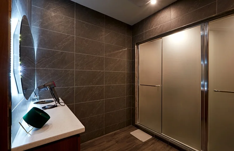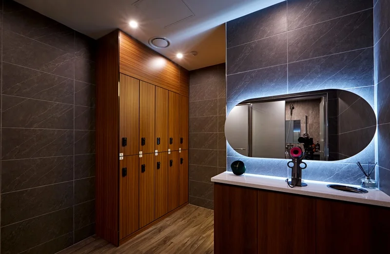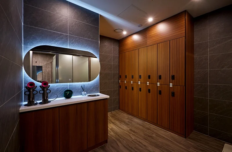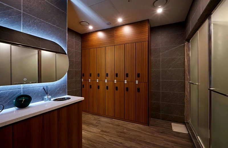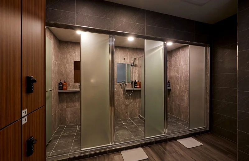 셋째, 락커룸과 샤워실 역시 공간을 효율적으로 활용하였는데, 락커룸의 경우 세로로 긴 형태로 만들어 공간을 절약하면서도 많은 수의 락커를 배치할 수 있도록 했고, 샤워실 역시 최소한의 공간을 사용하면서도 편리하게 이용할 수 있도록 설계하였습니다.