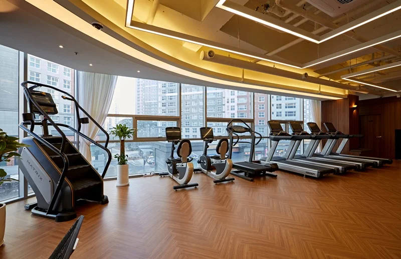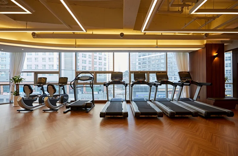 운동 중 발생할 수 있는 안전사고를 예방하기 위해 바닥재, 벽면, 천장 등을 안전하게 시공해야 합니다. 또 회원들의 건강과 위생을 고려하여 공기청정기, 제습기, 정수기 등을 설치하고, 정기적으로 청소와 소독을 실시해야 합니다.