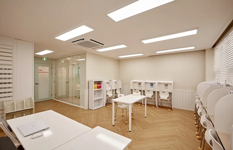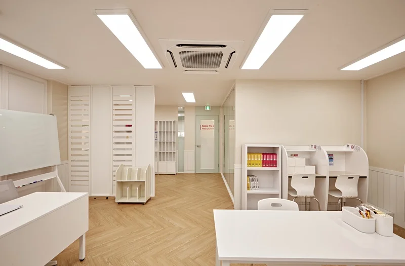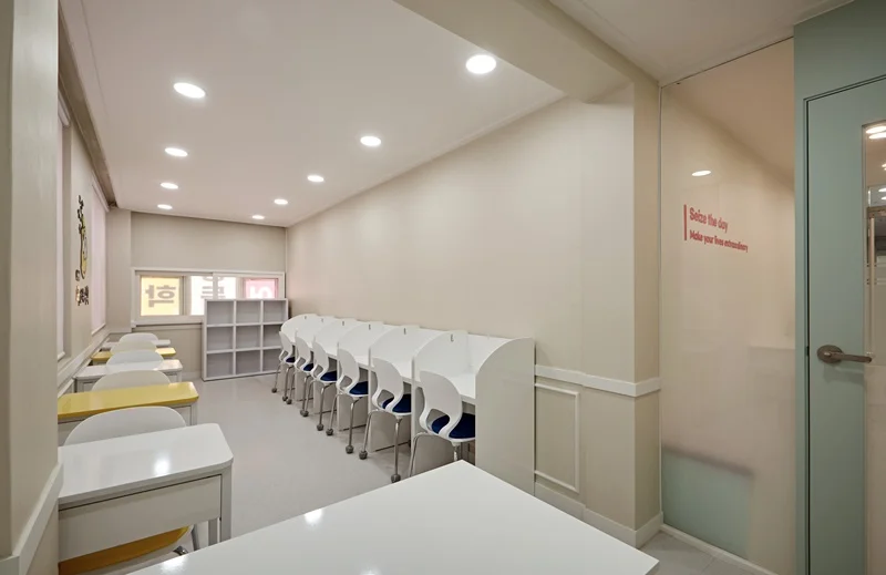 이렇게 수원학원인테리어는 학생들의 학습 성과를 극대화하기 위해 많은 요소를 고려하였습니다. 영어와 수학이라는 서로 다른 과목에 맞춘 디자인을 통해 학생들의 집중력과 편안함을 높였습니다. 공간 활용, 색상, 조명, 가구 배치 등 여러 요소가 조화롭게 어우러져 학생들이 자연스럽게 학습에 몰입할 수 있는 최적의 환경으로 구성하였습니다. 이처럼 학생들에게 더 나은 학습 환경을 제공하기 위한 학원인테리어를 원하신다면 언제든지 저희에게 문의해 주시기 바랍니다.