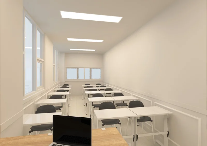 이를 위해서는 컬러 선택과 조명 계획이 중요합니다. 블루나 그린 계열의 컬러는 차분함과 안정감을 높여주며, 화이트나 그레이 계열의 컬러는 모던하고 깔끔한 분위기를 연출할 수 있습니다. 또한, 밝은 조명과 어두운 조명을 적절히 활용하여 수업 시간과 휴식 시간에 따라 분위기를 조절할 수 있도록 합니다.