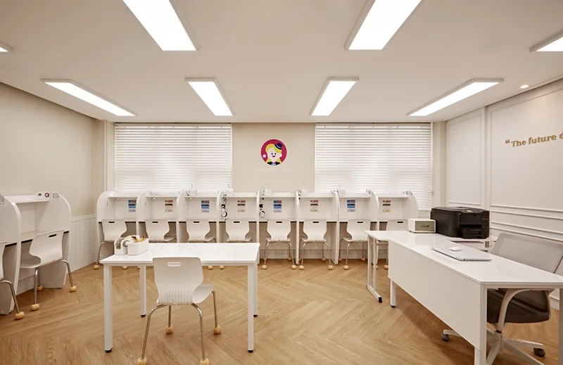 학생들은 스스로 문제를 해결하고, 이를 통해 자기주도적 학습 능력을 기릅니다. 그래서 영어 교육환경에서는 그룹 활동을 위한 넓은 공간과 테이블, 의자 등을 마련하고, 수학 교육환경에서는 개인 학습을 위한 독립적인 공간과 책상, 스탠드 등을 제공해야 합니다.