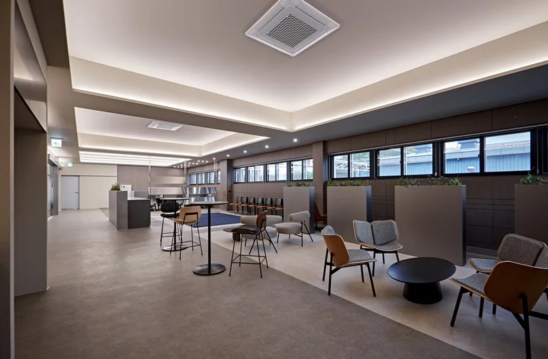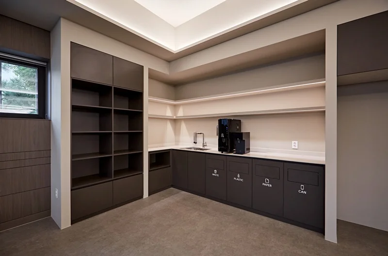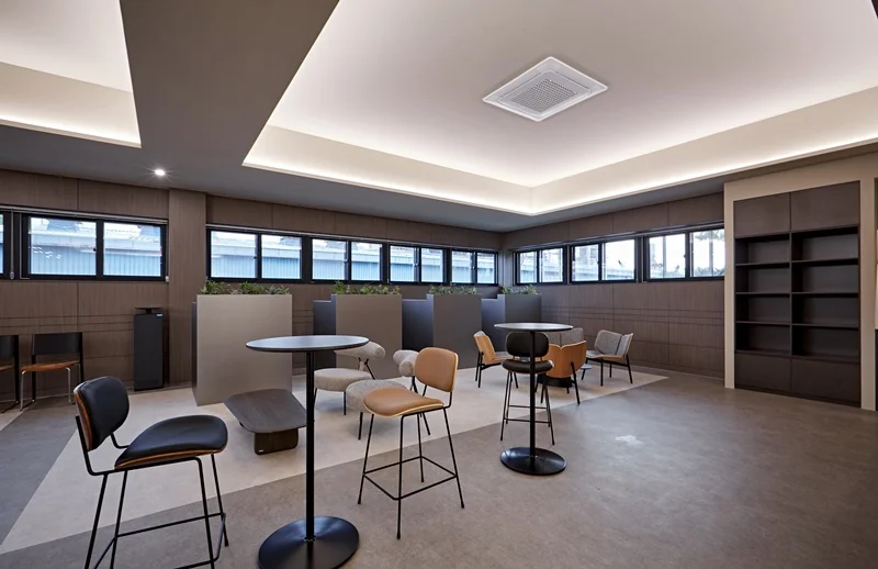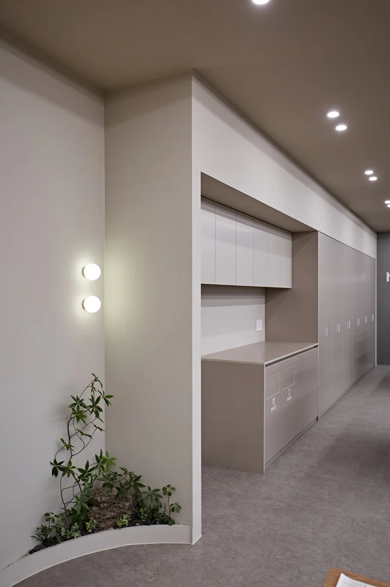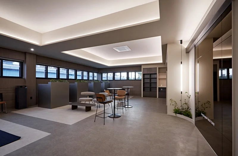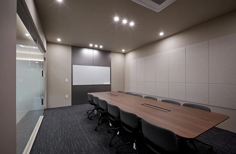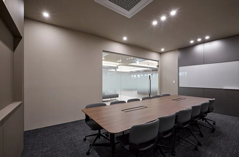 대형 회의실과 소형 미팅룸을 따로 마련하여 업무 목적에 따라 공간을 분리하였고 탕비실과 휴게실에도 그레이톤을 사용하여 통일감있게 아늑한 분위기를 연출하였습니다.