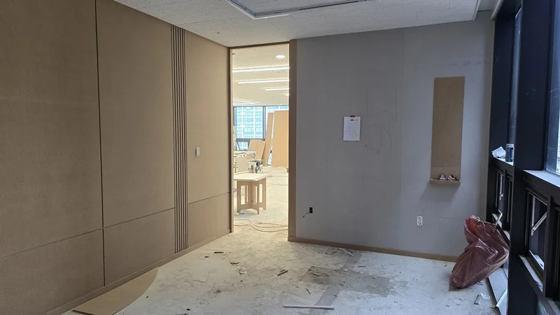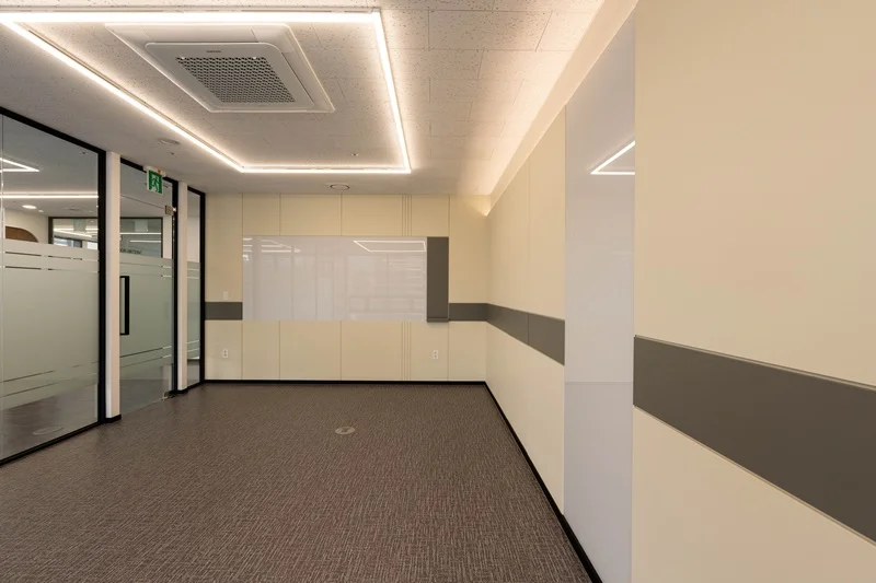 사무실 인테리어에서 색상은 굉장히 중요한 요소예요. 적절한 색상을 선택하면 공간이 더욱 밝고 화사하게 변할 수 있답니다. 보통 화이트, 그레이, 블루와 같은 중립적인 색상이 많이 사용되지만, 과감히 포인트 색상을 추가하면 분위기를 확 바꿀 수 있어요. 이 현장의 경우에는 전체적으로 화이트톤을 적용하되, 포인트 색상으로 파란색을 활용했는데요. 색상을 통해 감정이나 기분을 표현할 수 있다는 점, 정말 흥미롭지 않나요?